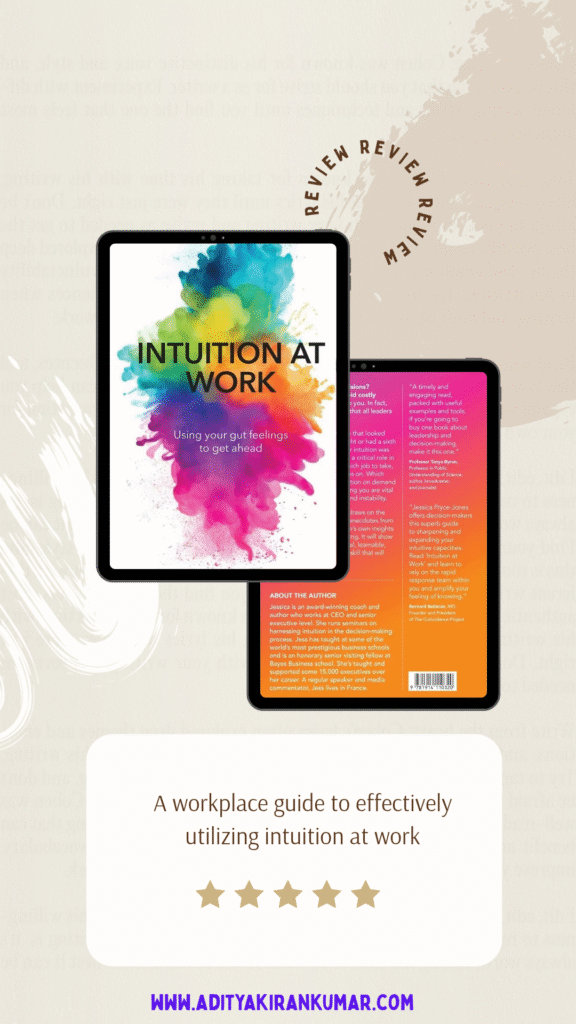 “Intuition at Work” is a workplace guide to effectively utilizing intuition. This beautifully crafted book enlightens readers and helps readers tap into the superpowers within themselves. It reminded me of a famous quote by Albert Einstein, where he says, “The only really valuable thing is intuition.” This quote emphasizes the importance of developing intuition to enhance deeper consciousness and free oneself from mental clutter and overthinking.