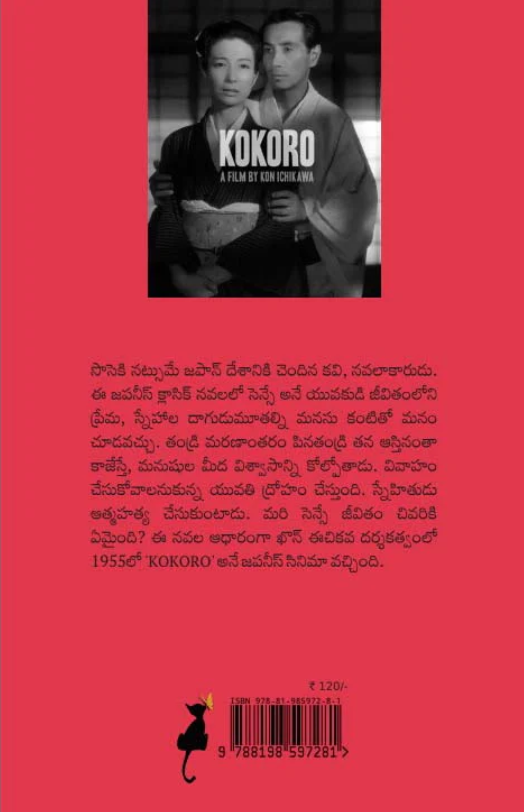సొసెకి నట్సుమే జపాన్ దేశానికి చెందిన కవి, నవలాకారుడు. ఈ జపనీస్ క్లాసిక్ నవలలో సెన్సే అనే యువకుడి జీవితంలోని ప్రేమ, స్నేహాల దాగుడుమూతల్ని మనసు కంటితో మనం చూడవచ్చు. తండ్రి మరణాంతరం పినతండ్రి తన ఆస్తినంతా కాజేస్తే, మనుషుల మీద విశ్వాసాన్ని కోల్పోతాడు. వివాహం చేసుకోవాలనుకున్న యువతి ద్రోహం చేస్తుంది. స్నేహితుడు ఆత్మహత్య చేసుకుంటాడు. మరి సెన్సే జీవితం చివరికి ఏమైంది? ఈ నవల ఆధారంగా ఖొన్ ఈచికవ దర్శకత్వంలో 1955లో ‘ KOKORO ‘ అనే జపనీస్ సినిమా వచ్చింది. ఈ నవలను శ్రీనివాస చక్రవర్తి అనువదించారు.